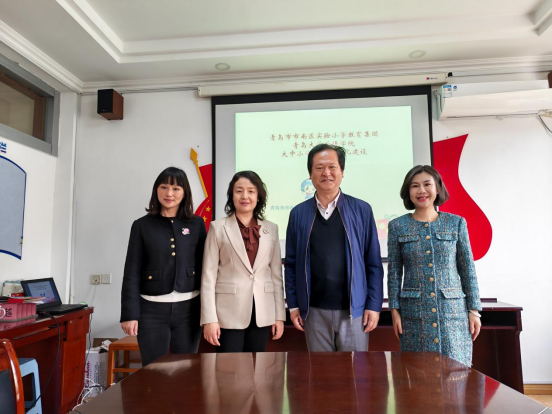 3月24日,外语学院与青岛市市南区实验小学教育集团联合举办的“大中小学多语思政共建基地”及“脑认知与语言科学研究中心共建基地”揭牌仪式在青岛市市南区实验小学教育集团举行。外语学院党委书记陈崇研、副书记于苗,市南区委教育工委委员、市南区教体局党组成员、副局长徐菲、青岛市南区实验小学教育集团总校长朱雪梅等嘉宾出席仪式。