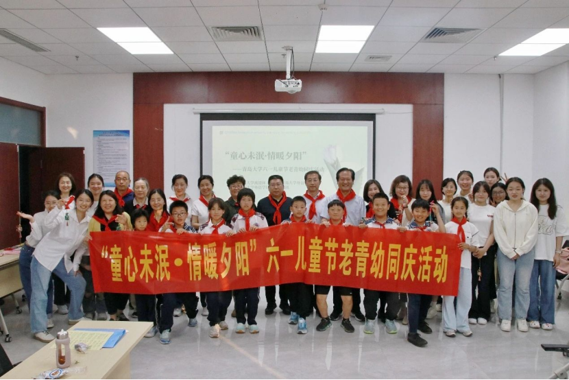5月29日下午,外语学院联合离退休工作处在浮山校区文化艺术楼B座党建活动室共同举办“童心未泯,情暖夕阳----老青幼同庆六一”活动。青岛大学离退休工作处处长宋佐东、副处长周志强、外语学院副院长王薇及离退休教师、外语学院学生及青岛天山小学学生代表三代人共聚一堂,以一场跨越年龄的温情对话,用艺术展演、文化体验与代际互动的方式,共同庆祝这个别样的六一儿童节。