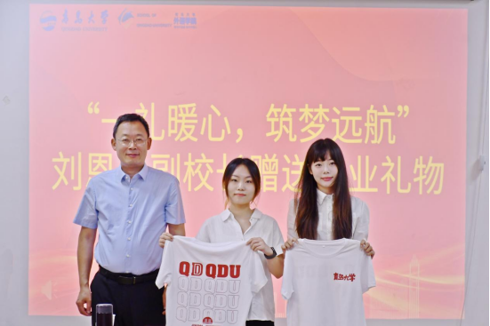 刘恩贤充分肯定了外语学院在人才培养方面取得的成绩,并为毕业生们赠送毕业礼物。对于毕业生们刘恩贤提出了三点期望:一是要坚定理想信念,树立远大抱负,将个人发展与国家命运紧密相连;二是要勇于担当责任,在工作岗位上脚踏实地,以实际行动践行使命;三是要珍惜同窗情谊,常回母校看看,共同见证学校的发展与进步。最后,刘恩贤亲手为毕业生们赠送毕业礼物,并鼓励毕业生在新的人生征程上扬帆起航。
