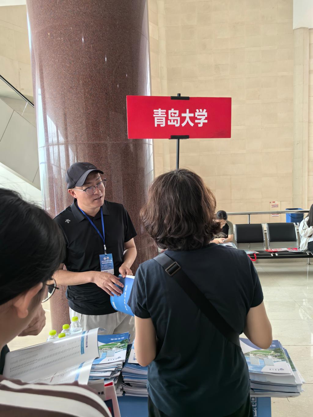 为进一步提升学校和学院本科生生源质量,6月26日我院招生宣传专员吕云、张驰、娄永强、张科蕾、崔花、庞伟、刘沁卉、张苗、陈皓、栾勋业在青岛大学体育馆副馆进行2025年高考招生咨询工作。6月26日至27日,我院招生宣传专员吕凯良赴烟台、威海进行2025年高考招生咨询工作。宣传专员不顾高温天气,耐心细致地向考生和家长宣传介绍了学院发展概况、办学条件、专业设置、师资队伍、学科建设、科学研究、本科生及研究生人才培养成效、奖助学金、就业及考研、优秀校友等情况,重点就考生关心的招生政策、专业选择、历年录取情况进行了现场答疑。