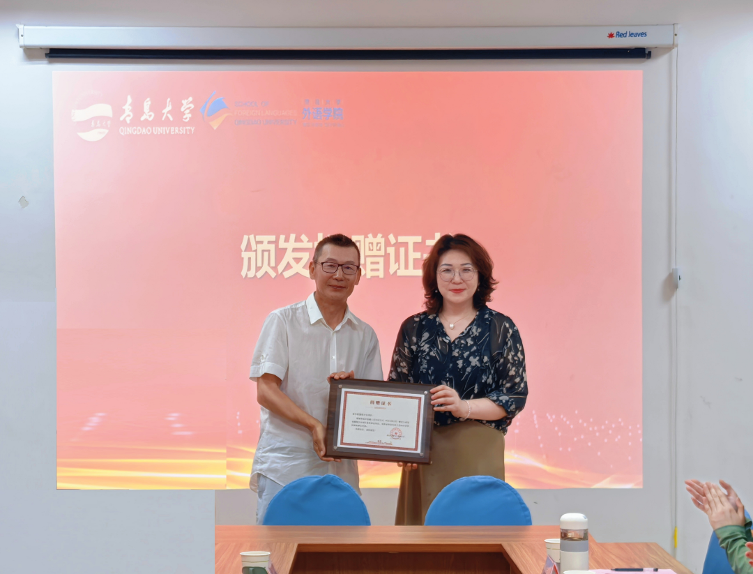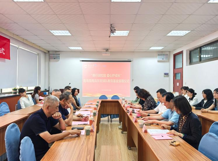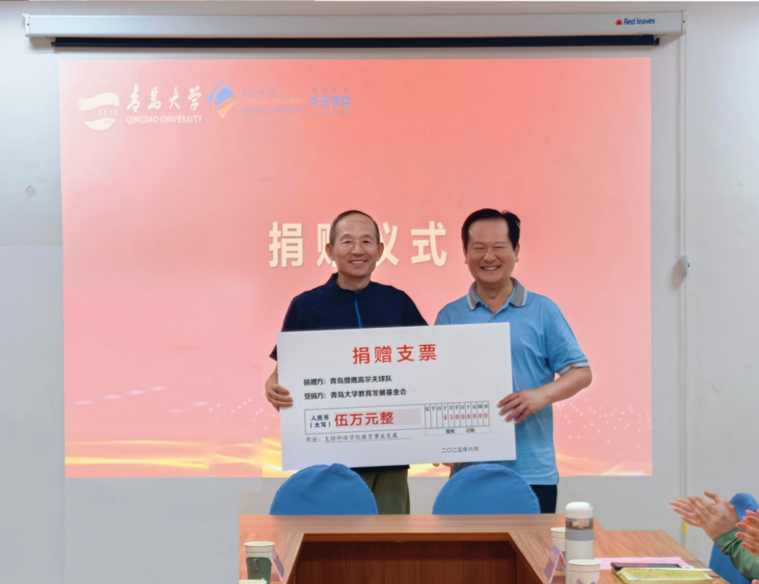 为凝聚多方育人力量,赋能学生全面发展,6月26日下午,外语学院在浮山校区博文楼312室举行“善行润校园 爱心护成长”青岛猎鹰高尔夫球队教育基金捐赠仪式,青岛大学党委常委、副校长刘恩贤出席并致辞。青岛猎鹰高尔夫球队会长王琳,队长唐秀山,队委张大勇、杨百灵、李震、赵倩,青岛大学合作发展处处长、校友工作办公室主任王海荣,外语学院党委书记陈崇研、院长卞建华、党委副书记于苗以及辅导员、学生代表出席仪式。仪式由外语学院党委副书记于苗主持。