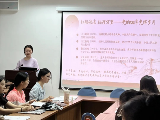 为热烈庆祝中国共产党成立104周年,深情纪念香港回归祖国28周年,进一步激发支部党员的爱国热情和奋斗精神,6月30日晚,青岛大学外语学院学生第四党支部在博文楼312会议室隆重举行了“红船破浪忆征程 紫荆绽放庆回归——庆祝建党104周年暨香港回归28周年”主题党日活动。外语学院学生第四党支部全体党员参会。