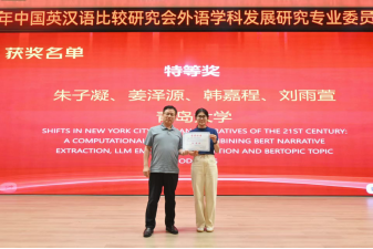 21号上午,朱子凝作为本科生创新论坛学生代表,在年会上作主旨报告,充分展现了青岛大学外语学院本科生的跨学科研究能力和学术创新潜力。