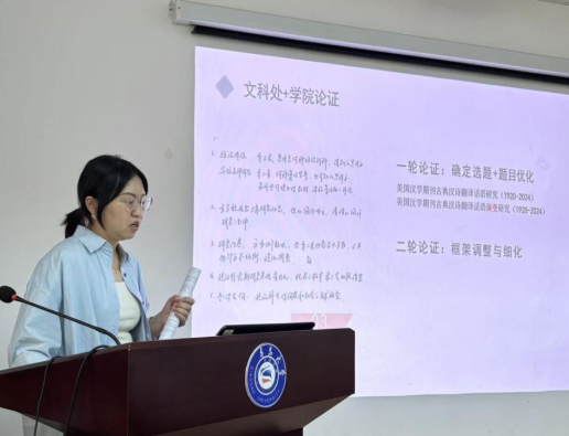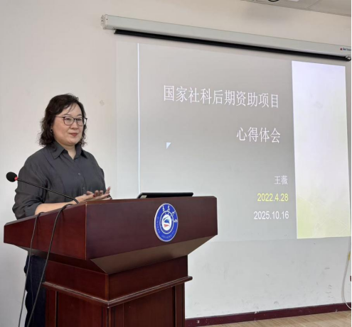 经验分享环节以“破题与提质”为主题展开深入交流。霍耀林副教授从项目申报和评审的视角出发,指出了申报书中存在的共性问题,并强调选题应突出问题意识,同时兼顾研究的可行性。王薇教授则结合自身成功申报后期资助项目的经历,分享了三点心得:要坚持不间断写作,不间断跟踪学界信息,不间断与同行交流。