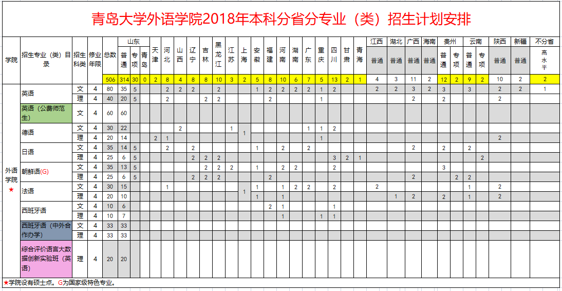 外语学院2018年本科分省分专业(类)招生计划安排