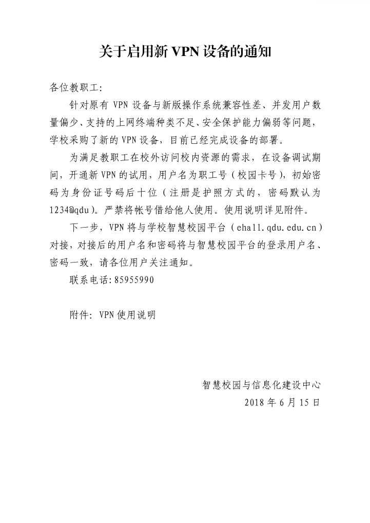 关于启用新VPN设备的通知