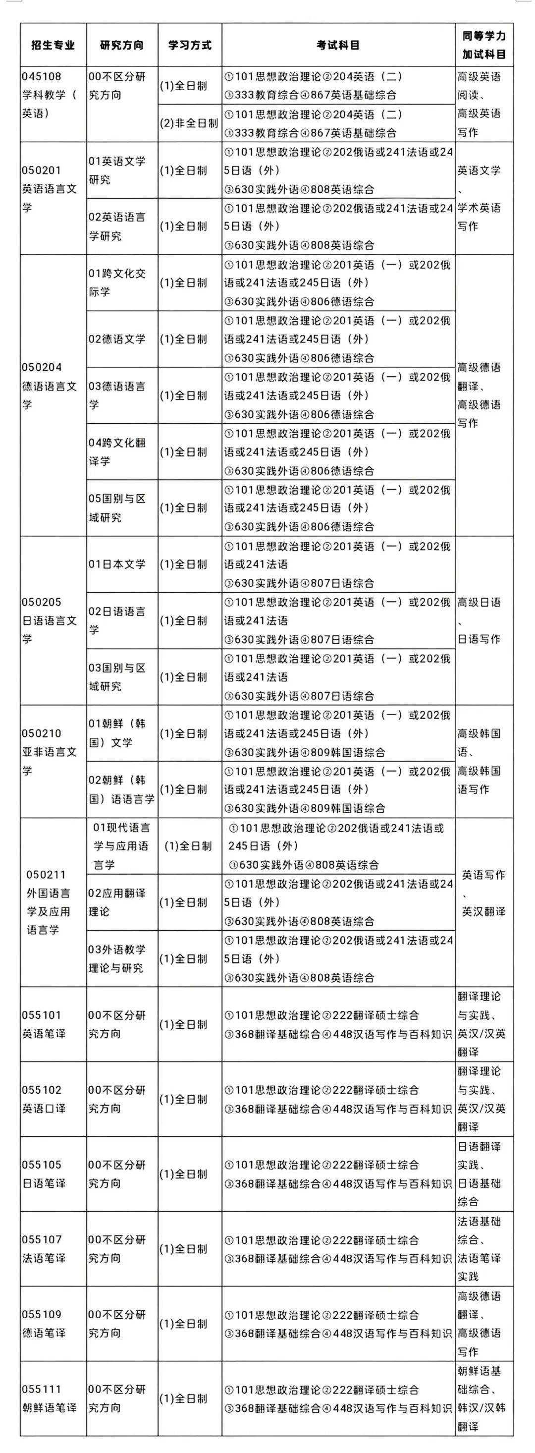 学院研究生教育设有外国语言文学一级学科学术学位硕士点和教育硕士、翻译硕士专业学位硕士点。学术学位设有外国语言学及应用语言学、英语语言文学、德语语言文学、日语语言文学和亚非语言文学5个二级学科硕士点。其中,日语语言文学为山东省重点学科。专业学位设有学科教学(英语)和英语口笔译、日语笔译、朝鲜语笔译、德语笔译以及法语笔译6个翻译硕士方向。2019-2024年,外国语言文学连续6年位列“软科中国最好学科排行榜”百强。